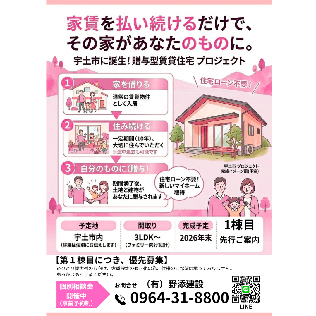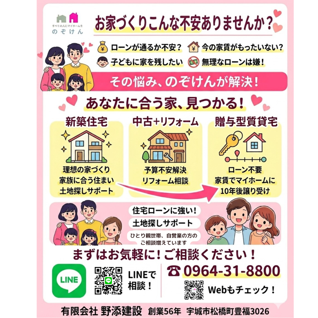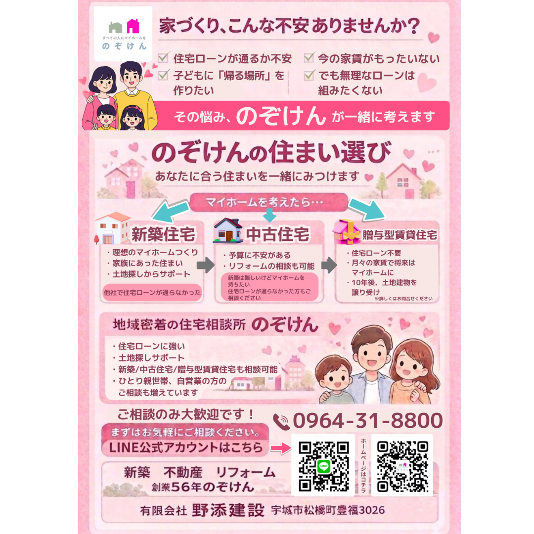 一人一人のご予算にあった住宅をご提供し本来人間が求めている「心の健康」を軸に豊かで笑顔が絶えない家づくりをご提案してまいります。